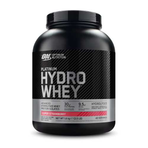 Optimum Nutrition Platinum Hydro Whey is an advanced whey protein product in its purest form. This product contains a single-source protein composed entirely of hydrolysed whey protein isolates.Isolates are the purest form of whey protein with no excess fat, cholesterol, or lactose. Hydrolysing the isolates breaks the larger proteins down into smaller pieces.Benefits:Each shake delivers 30g of pure whey protein, 8.8g of muscle building BCAAs, but with just 137 calories per serving.Container Size: 1.8kgServing Size: 1 scoop (39g)Servings Per Container: 40Nutrition Information per serving:Calories 140 kcal Total Fat 1gSaturated Fat 0.5gTrans Fat 0gCholesterol 0mgSodium 170mgTotal Carbohydrate 2gSugars 0gProtein 30gIngredients:ChocolateHydrolyzed WHEY* Protein Isolates as Actitor® (86%), Emulsifier: SOY Lecithin), Branched Chain Amino Acids (L-Leucine, L-Isoleucine, L-Valine, Emulsifier: SOY Lecithin), Thickener (Carrageenan), Flavourings, Fat Reduced Cocoa Powder (2.1%), Sodium Chloride, Sweeteners (Sucralose , Acesulfame K), Flavour Enhancer (Potassium Chloride), Sunflower Oil Powder (MILK).StrawberryHydrolyzed WHEY* Protein Isolates as Actitor® (87%), Emulsifier: SOY Lecithin), Branched Chain Amino Acids (L-Leucine, L-Isoleucine, L-Valine, Emulsifier: SOY Lecithin), Flavourings, Thickener (Carrageenan), Acidity Regulators (Citric Acid, Malic Acid), Colour (Beetroot Red), Sodium Chloride, Sweeteners (Sucralose , Acesulfame K), Flavour Enhancer (Potassium Chloride), Sunflower Oil Powder (MILK)VanillaHydrolyzed WHEY* Protein Isolates as Actitor® (86%), Emulsifier: SOY Lecithin), Branched Chain Amino Acids (L-Leucine, L-Isoleucine, L-Valine, Emulsifier: SOY Lecithin), Thickener (Carrageenan), Flavourings, Sweeteners (Sucralose , Acesulfame K), Sunflower Oil Powder (MILK), Sodium ChlorideAllergen Information:Contains: Milk, Soy (Lecithin). May Contain: Gluten, Egg, Nuts and Peanuts.Recommended Use:Simply add 1 scoop of Platinum Hydrowhey to a blender, shaker cup, or glass filled with 10-12 ounces of cold water, milk, or juice and blend, shake, or stir for 20-30 seconds or until powder is dissolved.Warnings:Do not use if you are allergic to any of the supplement's compounds. Do not use if pregnant or nursing. A varied and balanced diet and a healthy lifestyle are recommended. Keep out of reach of young children