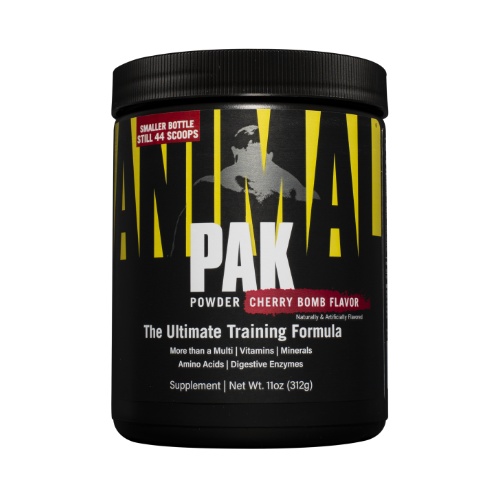 Animal Pak is the world's most famous complex of vitamins, minerals, amino acids and other active ingredients. From now on, you can also buy this supplement in powder form. There are people who find it difficult to swallow many tablets every day, and the powder form will greatly facilitate both the consumption of the supplement and its absorption. In addition, you will now be able to dispense the amount of material you need much more conveniently: you want more - you add more powder, you want less - you add less powder.Servings Per Container: 44Serving Size: 7.7gPackage size: 340gNUTRITION DECLARATION (orange): 2 servings (15.5 g) 100 g product Calories 24 kcal / 100 kJ 155 kcal / 649 kJFat 0 g 0 gcontaining saturated fatty acids 0 g 0 gCarbohydrates 3 g 19 gcontaining 1 g of sugar 6 gProtein 3 g 19 gSalts 0 g 0 gvitamin A 19800 (g (3326% RMV) 127495 µg (3326% RMV)vitamin C 1 g (1250% RMV) 6 g (1250% RMV)vitamin D 5 µg (100% RMV) 32 µg (640% RMV)vitamin E 104 mg (867% RMV) 670 mg (5583% RMV)thiamine 19 mg (1727% RMV) 122 mg (11091% RMV)vitamin B2 19 mg (1357% RMV) 122 mg (8714% RMV)niacin 19 mg (194% RMV) 199 mg (1244% RMV)vitamin B6 25 mg (1786% RMV) 161 mg (11500% RMV)folic acid 400 (g (200% RMV) 2576 µg (1288% RMV)vitamin B12 6 (g (240% RMV) 39 µg (1560% RMV)biotin 300 µg (600% RMV) 1932 µg (3864% RMV)pantothenic acid 76 mg (1267% RMV) 490 mg (8167% RMV)calcium 170 mg (21% RMV) 1095 mg (137% RMV)phosphorus 30 mg 193 mg (28% RMV)iodine 150 µg (100% RMV) 966 µg (644% RMV)magnesium 400 mg (107% RMV) 2576 mg (687% RMV)zinc 30 mg (300% RMV) 193 mg (1930% RMV)selenium 50 (g (91% RMV) 322 µg (586% RMV)copper 0.6 mg (60% RMV) 3.9 mg (390% RMV)manganese 5 mg (250% RMV) 32 mg (1600% RMV)chromium 60 µg (150% RMV) 386 µg (965% RMV)potassium 45 mg (2% RMV) 290 mg (14.5% RMV)MIXTURE OF AMINO ACIDS:alanine 147 mg 947 mgarginine 450 mg 2898 mgaspartic acid 318 mg 2048 mgcysteine 75 mg 483 mgglutamic acid 364 mg 2344 mgglycine 56 mg 361 mgglutamine 139 mg 895 mghistidine 58 mg 373 mgisoleucine 185 mg 1191 mgleucine 325 mg 2093 mglysine 269 mg 1732 mgmethionine 62 mg 399 mgphenylalanine 101 mg 650 mgproline 166 mg 1069 mgserine 140 mg 901 mgthreonine 191 mg 1230 mgtryptophan 49 mg 316 mgtyrosine 88 mg 567 mgvaline 175 mg 1127 mgSPECIAL MIXTURE:Uni-Prominio (whey protein isolate, dried beef liver, beef protein isolate, Siberian ginseng root, hawthorn berries, marjoram seeds, citrus bioflavonoid bark) 3260 mg 20992 mgcarntino 25 mg 161 mgcholine bitartrate 250 mg 1610 mginositol 125 mg 805 mgL-taurine 500 mg 3220 mgpara-aminobenzoic acid 400 mg 2576 mgMIXTURE OF ANTIOXIDANTS:coenzyme Q 10 5 mg 32 mggrape seed extract 50 mg 322 mgluteino 1 mg 6 mglycopene 1 mg 6 mgpine bark extract 200 mg 1288 mgbrown algae (whole plant) 10 mg 64 mgDIGESTIVE ENZYME COMPLEX:bromelain 100 mg 644 mginulin 250 mg 1609 mgpapain 64 mg 412 mgRMV is the reference nutritional value. Note: RMV has been recalculated in accordance with the requirements of European Union legislation.INGREDIENTS:Orange flavor: whey protein isolate (milk), dried beef liver, beef protein isolate, Siberian ginseng root, hawthorn berries, true marjoram seeds, citrus bioflavonoid bark, arginine, L-ascorbic acid, L-ascorbate, 6-ascorbate , magnesium oxide, para-aminobenzoic acid, glutamic acid, leucine, aspartic acid, lysine, choline bitartrate, inulin, pyridoxine alpha-ketoglutarate, alpha lipoic acid, pine bark extract, isoleucine, threonine, pyronine, pyridoxine, pyridoxine , alanine, serine, glutamine, inositol, D-alpha-tocopherol, phenylalanine, bromelain, tyrosine, nicotinamide, calcium D-pantothenate, thiamine mononitrate, riboflavin, cysteine, protease acid, papain, methionine, histidine, glycine, glycine tryptophan, zinc oxide, carnitine, brown algae (whole plant), lipase, manganese sulphate, pteroyl monoglutamic acid, beta-carotene, retinyl acetate, coenzyme Q 10, D-biotin, potassium iodide, chromium chloride, methylcobalamin, cyanocobalamin, sodium selenite, cholecalciferol, lutein, lycopene, copper sulphate, orange and vanilla flavorings, acidity regulators and citric acid: citric acid arginine hydrochloride, opacifier silicon dioxide, sweeteners: sucralose and acesulfame K, L-carnitine tartrate, calcium salts of citric acid, dye tartrazine *, antioxidant lecithins, dye sunset yellow FCF *.* The dyes tartrazine and sunset yellow FCF can adversely affect children's activity and attention.Recommended use:1-2 servings per day, depending on the intensity of your workouts. Dilute 1 serving (1 scoop) of powder with 180 ml of water or another favorite beverage (milk and alcohol are not suitable). To be taken with breakfast or with any other food of the day. The maximum daily dose is 2 servings (2 cups - 15.5 g).Allergens:Milk, soy. Made in the factory, according to Good Manufacturing Practice (GMP) standards, which use milk, soy, eggs and peanuts. Traces of these products may be found.Warnings: This product should not be used in persons under 18 years of age, pregnant or breastfeeding women. Talk to your sports doctor or trainer before using this product, especially if you have any illness, are taking prescribed medications or dietary supplements. Stop taking the product and talk to your doctor if you notice any adverse side effects. Athletes should consult with the appropriate authorities before using this product. Discontinue use of the product 2 weeks before the scheduled operation.Do not exceed the prescribed recommended dose. The product should not be used as a food substitute. Keep out of reach of children. A balanced and varied diet and a healthy lifestyle are important. Protect from direct sunlight and moisture. Protect from direct sunlight and moisture. Store in a cool, dry place at a temperature not exceeding 25 ° C. Consult a sports doctor or coach before use.